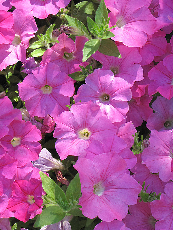 Easy Wave® Pink Petunia is clothed in stunning pink trumpet-shaped flowers with white throats at the ends of the stems from mid spring to late summer. Its pointy leaves remain green in color throughout the season.