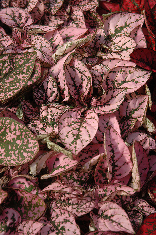 Splash Select™ Pink Polka Dot Plant's attractive pointy leaves remain pink in color with distinctive dark green spots throughout the year on a plant with a mounded habit of growth.