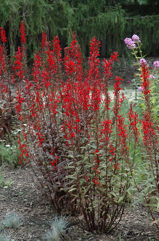 Black Truffle Cardinal Flower will grow to be about 24 inches tall at maturity extending to 4 feet tall with the flowers, with a spread of 24 inches. When grown in masses or used as a bedding plant, individual plants should be spaced approximately 20 inches apart. It has a low canopy with a typical clearance of 1 foot from the ground. It grows at a fast rate, and under ideal conditions can be expected to live for approximately 5 years. As an herbaceous perennial, this plant will usually die back to the crown each winter, and will regrow from the base each spring. Be careful not to disturb the crown in late winter when it may not be readily seen!