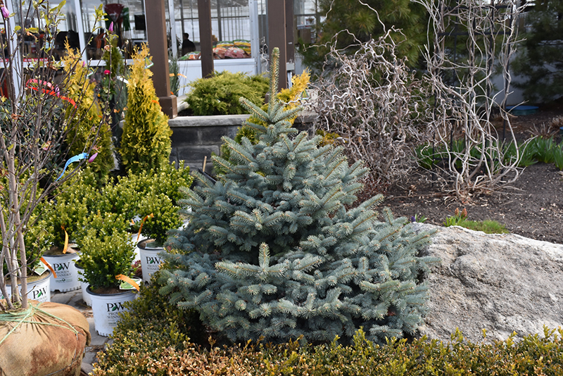 Avatar Blue Spruce is primarily valued in the landscape for its distinctively pyramidal habit of growth. It has attractive blue foliage with hints of silver which emerges powder blue in spring. The needles are highly ornamental and remain blue throughout the winter. The rough gray bark adds an interesting dimension to the landscape.