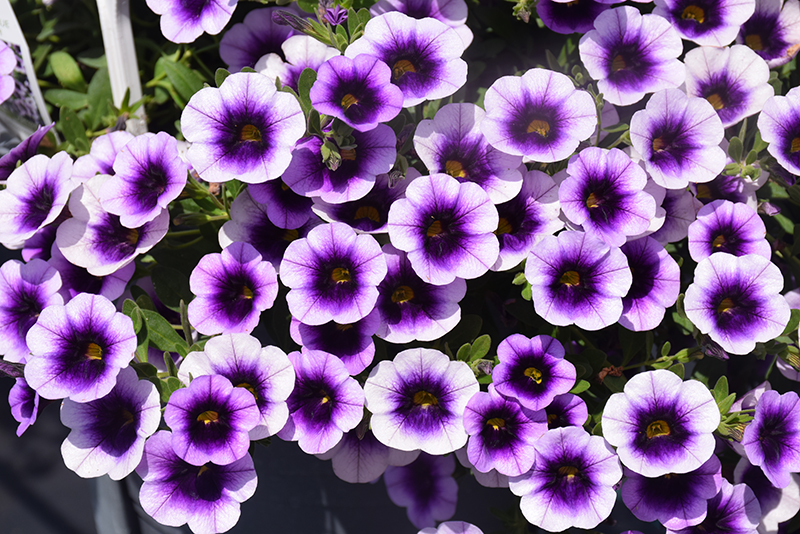 Superbells® Blue Moon Punch™ Calibrachoa is a dense herbaceous annual with a trailing habit of growth, eventually spilling over the edges of hanging baskets and containers. Its medium texture blends into the garden, but can always be balanced by a couple of finer or coarser plants for an effective composition.