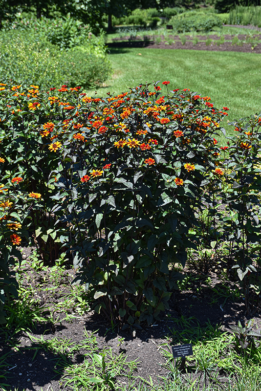 Bleeding Hearts False Sunflower has masses of beautiful red daisy flowers with orange overtones, brick red eyes and yellow tips at the ends of the stems from early summer to mid fall, which are most effective when planted in groupings. The flowers are excellent for cutting. Its serrated oval leaves emerge green in spring, turning dark green in color with showy deep purple variegation throughout the season. The deep purple stems can be quite attractive.