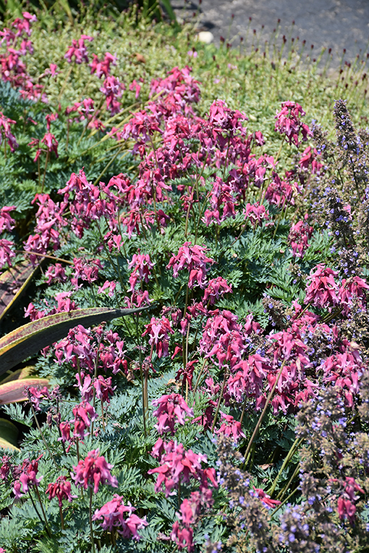 Pink Diamonds Fern-leaved Bleeding Heart will grow to be about 12 inches tall at maturity extending to 16 inches tall with the flowers, with a spread of 18 inches. When grown in masses or used as a bedding plant, individual plants should be spaced approximately 16 inches apart. Its foliage tends to remain dense right to the ground, not requiring facer plants in front. It grows at a slow rate, and under ideal conditions can be expected to live for approximately 10 years. As an herbaceous perennial, this plant will usually die back to the crown each winter, and will regrow from the base each spring. Be careful not to disturb the crown in late winter when it may not be readily seen! As this plant tends to go dormant in summer, it is best interplanted with late-season bloomers to hide the dying foliage.