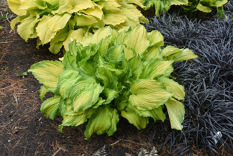 First Dance Hosta features dainty spikes of lavender tubular flowers rising above the foliage from mid to late summer. Its attractive textured heart-shaped leaves emerge yellow in spring, turning chartreuse in color with distinctive dark green edges and tinges of light green throughout the season.