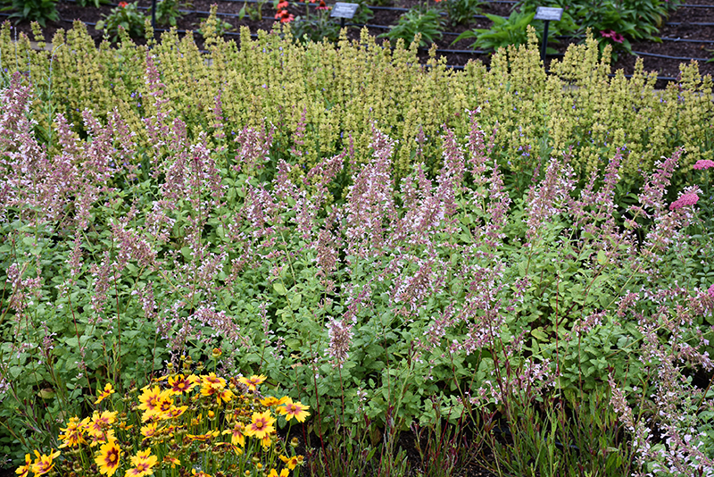 Whispurr™ Pink Catmint will grow to be about 24 inches tall at maturity, with a spread of 22 inches. When grown in masses or used as a bedding plant, individual plants should be spaced approximately 28 inches apart. Its foliage tends to remain dense right to the ground, not requiring facer plants in front. It grows at a fast rate, and under ideal conditions can be expected to live for approximately 10 years. As an herbaceous perennial, this plant will usually die back to the crown each winter, and will regrow from the base each spring. Be careful not to disturb the crown in late winter when it may not be readily seen!