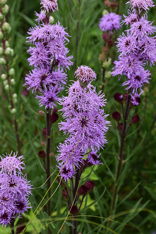 Rocky Mountain Blazing Star has masses of beautiful spikes of violet flowers with rose overtones and dark red eyes rising above the foliage from mid summer to mid fall, which emerge from distinctive red flower buds, and which are most effective when planted in groupings. The flowers are excellent for cutting. Its narrow leaves are green in color. The foliage often turns coppery-bronze in fall.