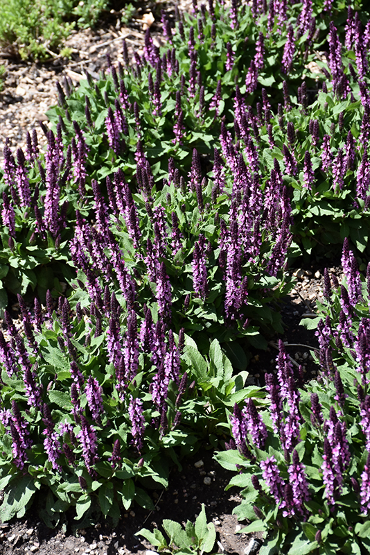 Midnight Rose Meadow Sage will grow to be about 12 inches tall at maturity extending to 18 inches tall with the flowers, with a spread of 20 inches. When grown in masses or used as a bedding plant, individual plants should be spaced approximately 18 inches apart. It grows at a medium rate, and under ideal conditions can be expected to live for approximately 5 years. As an herbaceous perennial, this plant will usually die back to the crown each winter, and will regrow from the base each spring. Be careful not to disturb the crown in late winter when it may not be readily seen!