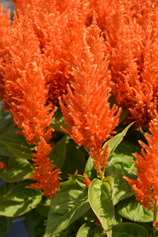 Flamma Orange Celosia features showy plumes of orange flowers rising above the foliage from early summer to mid fall. The flowers are excellent for cutting. Its pointy leaves remain green in color throughout the season.