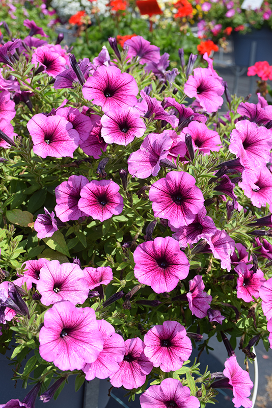 SureShot™ Pink Vein Petunia is a fine choice for the garden, but it is also a good selection for planting in outdoor containers and hanging baskets. Because of its trailing habit of growth, it is ideally suited for use as a 'spiller' in the 'spiller-thriller-filler' container combination; plant it near the edges where it can spill gracefully over the pot. Note that when growing plants in outdoor containers and baskets, they may require more frequent waterings than they would in the yard or garden.