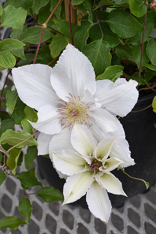 Guernsey Flute™ Clematis makes a fine choice for the outdoor landscape, but it is also well-suited for use in outdoor pots and containers. Because of its spreading habit of growth, it is ideally suited for use as a 'spiller' in the 'spiller-thriller-filler' container combination; plant it near the edges where it can spill gracefully over the pot. It is even sizeable enough that it can be grown alone in a suitable container. Note that when grown in a container, it may not perform exactly as indicated on the tag - this is to be expected. Also note that when growing plants in outdoor containers and baskets, they may require more frequent waterings than they would in the yard or garden. Be aware that in our climate, most plants cannot be expected to survive the winter if left in containers outdoors, and this plant is no exception. Contact our experts for more information on how to protect it over the winter months.
