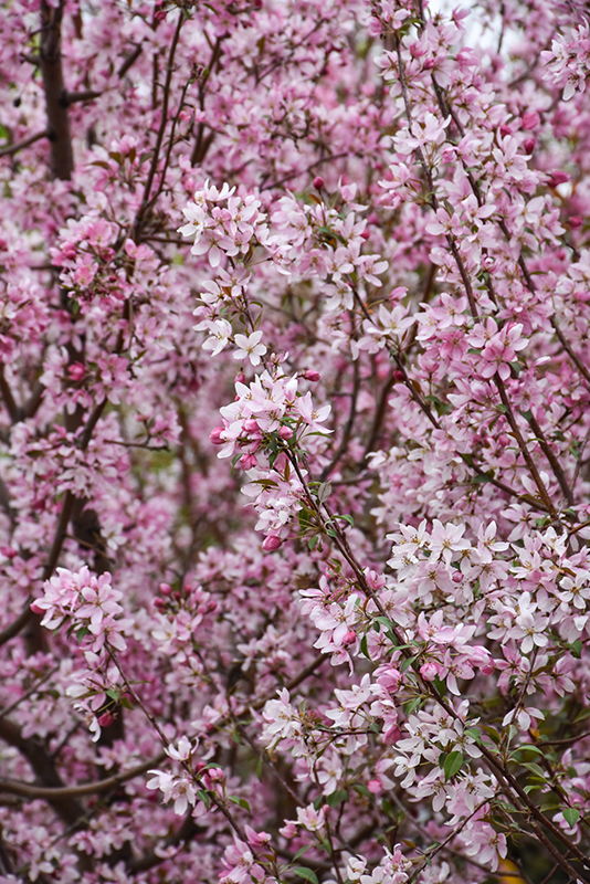 Pink Spires Flowering Crab is a deciduous tree with a distinctive and refined pyramidal form. Its average texture blends into the landscape, but can be balanced by one or two finer or coarser trees or shrubs for an effective composition.