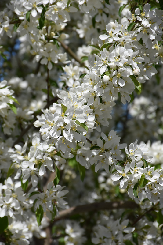 Spring Snow Flowering Crab is a deciduous tree with a narrowly upright and columnar growth habit. Its average texture blends into the landscape, but can be balanced by one or two finer or coarser trees or shrubs for an effective composition.